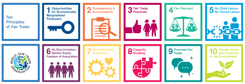 There are the 10 Principles of Fairtrade that guide fair trade practices set by The World Fair Trade Organization (WFTO) – a global network of organisations dedicated to promoting fair trade.