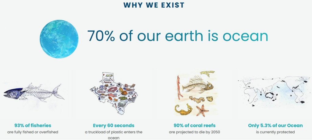 🐟With 90% of big fish populations depleted, and 50% of coral reefs destroyed, we are taking more from the ocean than can be replenished.